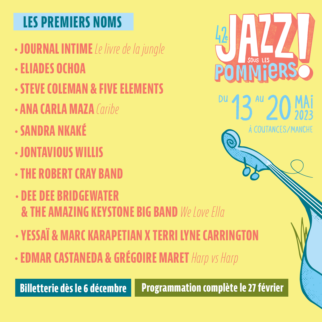 Le festival Jazz sous les Pommiers retrouve la douceur du mois de mai ! Du 13 au 20 mai, le jazz règnera en maître sur Coutances où se tiendra la 42ème édition de l'évènement printanier qui nous prépare une magnifique série de concerts, d'animations et de spectacles dans l'esprit festif qui lui est si cher.